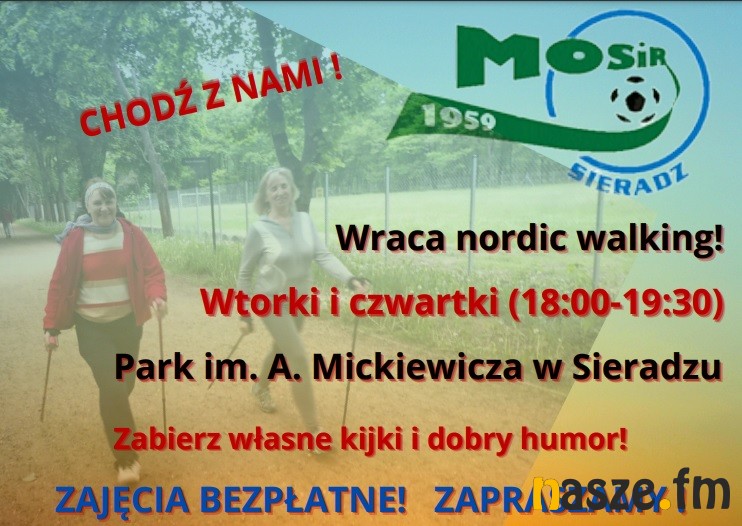 Dziś odbędą się pierwsze w tym roku zajęcia nordic walking w Parku im. Adama Mickiewicza w Sieradza. Początek o 18:00.