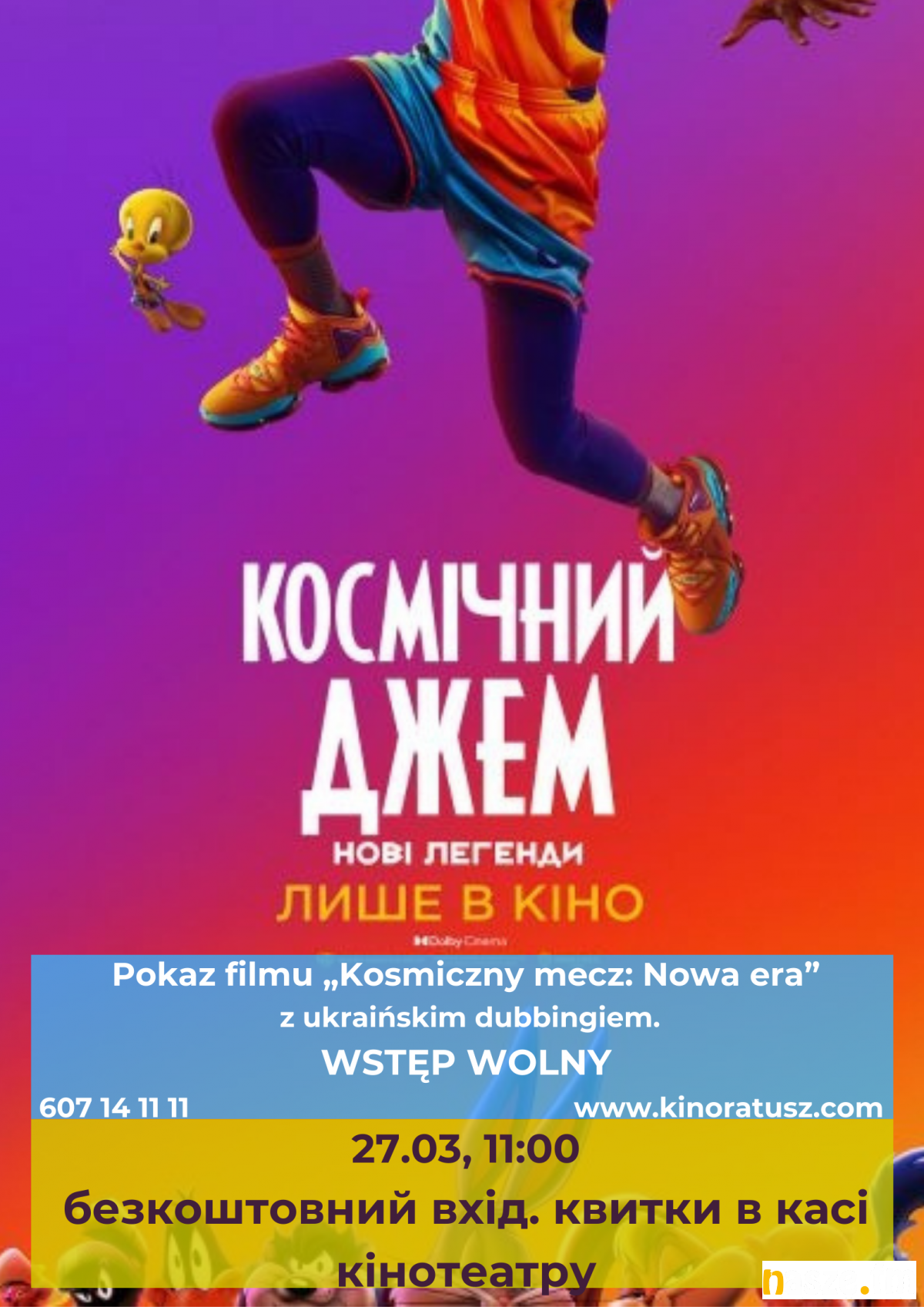 Kino Ratusz w Zduńskiej Woli zaprasza dzieci i młodzież z Ukrainy na specjalny pokaz filmu. W ukraińskim dubbingiem zobaczyć będzie można "Kosmiczny mecz: Nowa era".