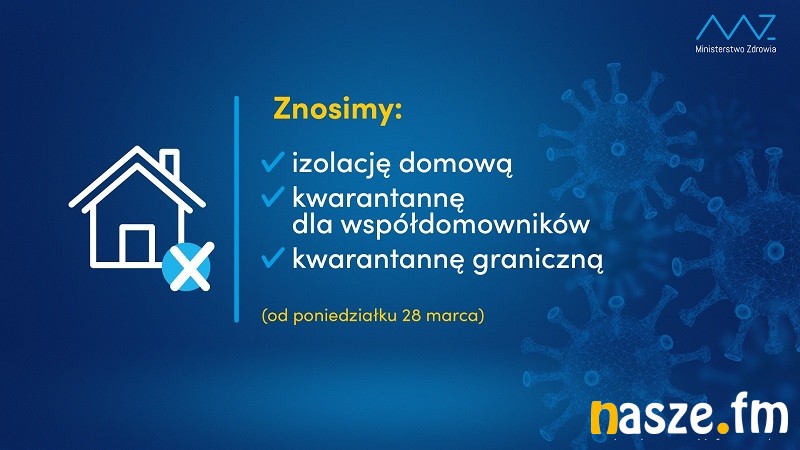 Od poniedziałku, 28 marca, zniesiony zostanie obowiązek noszenia maseczek z wyjątkiem podmiotów medycznych. Zniesiona będzie też izolacja oraz kwarantanna domowa dla współdomowników oraz ta związana z wjazdem do Polski.