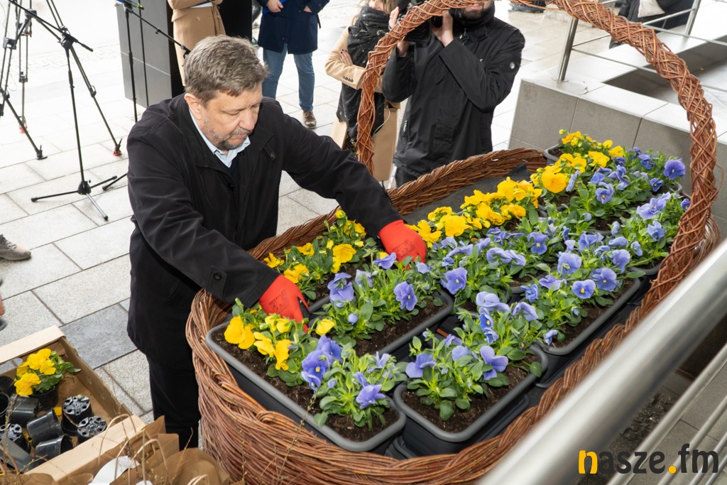 Na zakończenie konferencji prasowej o projekcie "Województwo Łódzkie Ogrodem Polski - Ogrody przyjazne naturze" marszałek posadził wspólnie z dziennikarzami niebieskie i żółte bratki w wiklinowym koszu przed Urzędem Marszałkowskim w Łodzi. - Te kolory to symboliczny hołd oddany ludziom, którzy dramatycznie walczą z rosyjską agresją na Ukrainie. Łączymy go dziś z wiarą w zwycięstwo i w naturę. Z przekonaniem, iż wszystko się odrodzi, wróci do normalności, że znów będzie takie, jak dawniej - tłumaczył Grzegorz Schreiber.