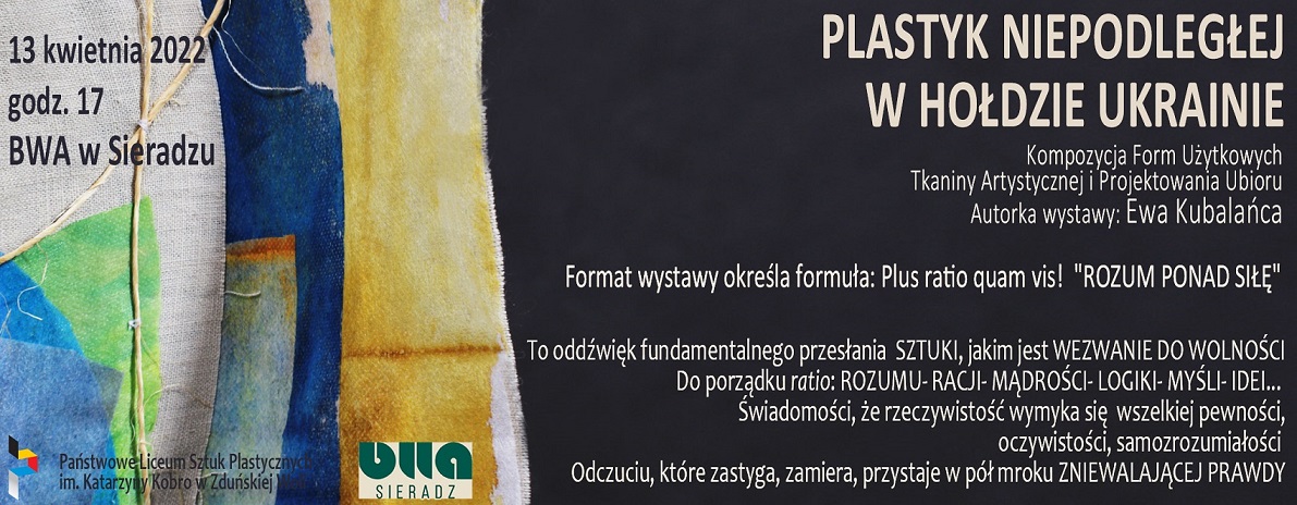 Dziś w Galerii na Piętrze w Biurze Wystaw Artystycznych w Sieradzu o godz. 17:00 zostanie otwarta wystawa tkaniny artystycznej. Zobaczymy na niej prace młodzieży Państwowego Liceum Sztuk Plastycznych w Zduńskiej Woli. Ekspozycja nawiązuje do wojny w Ukrainie.