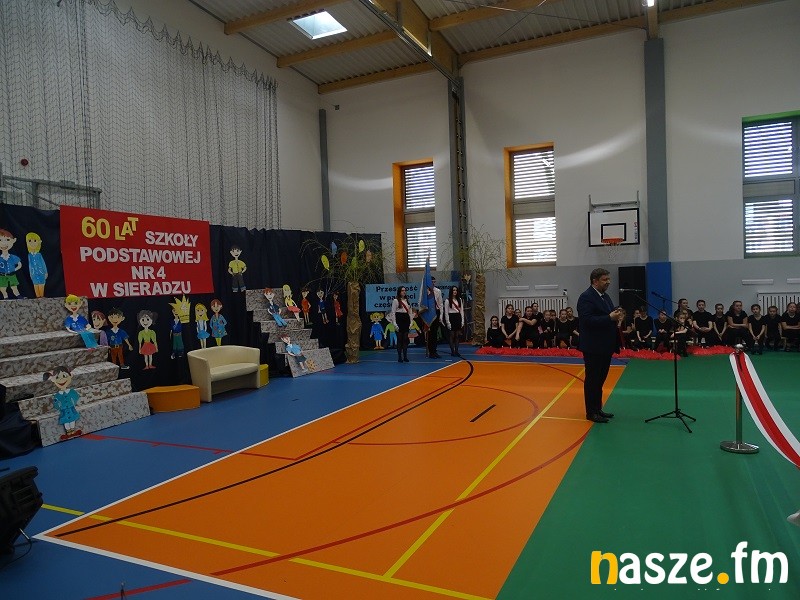 Szkoła Podstawowa nr 4 w Sieradzu kończy w tym roku 60 lat. Z tej okazji, dyrektor Renata Pawlikowska zorganizowała oficjalną uroczystość połączoną z otwarciem nowej sali gimnastycznej. Stara była mniejsza i niższa, natomiast nowa jest obiektem sportowym na miarę XXI wieku.