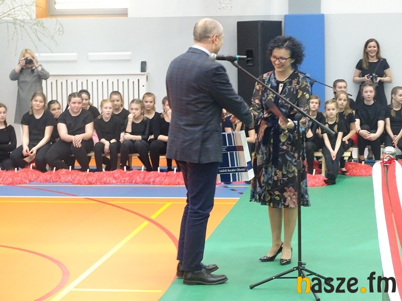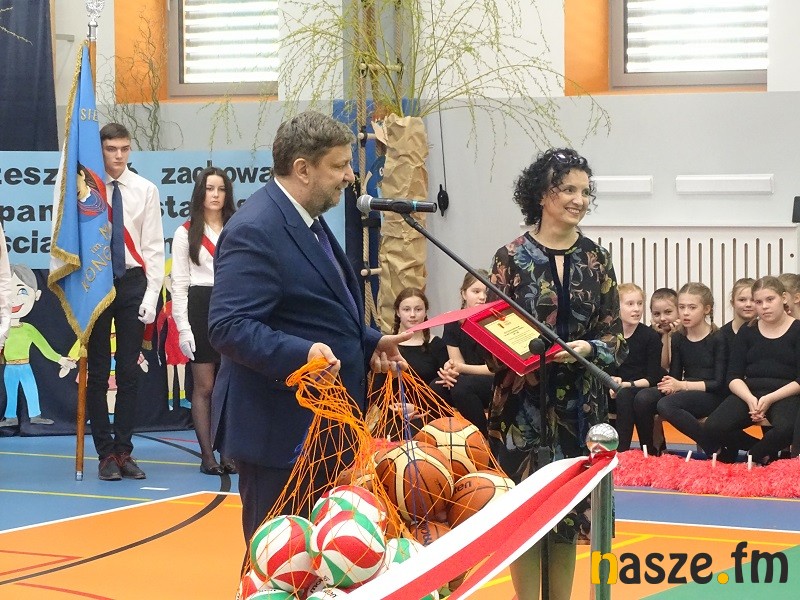 Jak na urodziny przystało, nie mogło zabraknąć także prezentów. Szkoła otrzymała od włodarzy m.in. nowy sprzęt sportowy i inne pamiątki.