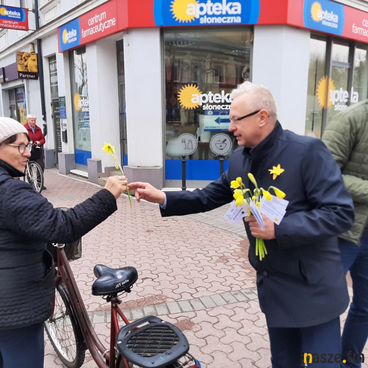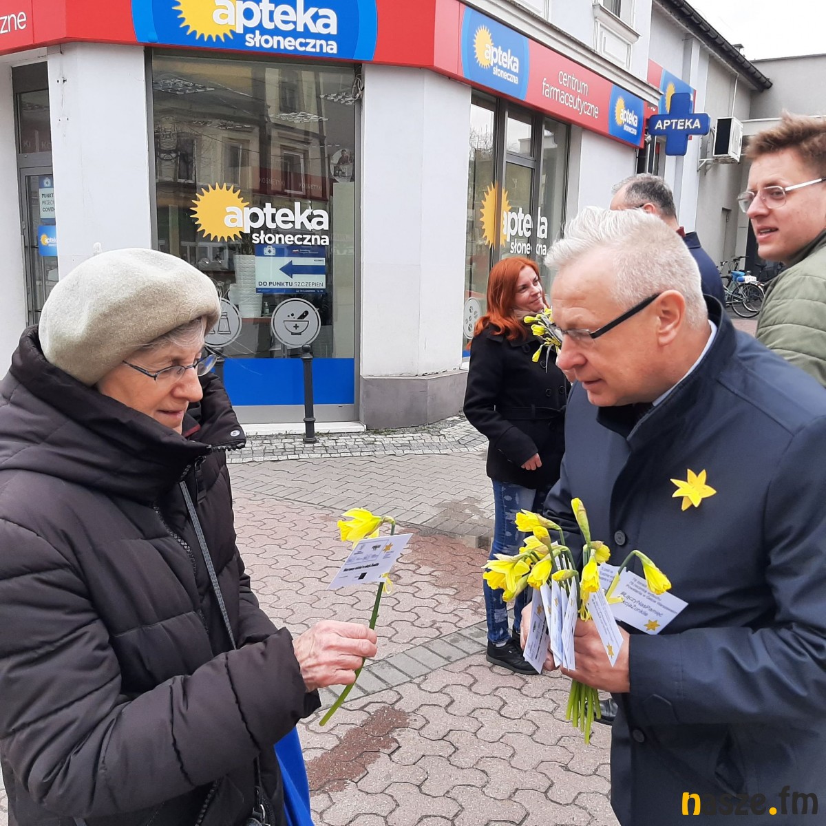 W Zduńskiej Woli przy ul. Łaskiej wolontariusze, wspólnie z prezydentem Konradem Pokorą oraz wicestarostą zduńskowolskim Wojciechem Rychlikiem rozdawali przechodniom żonkile.