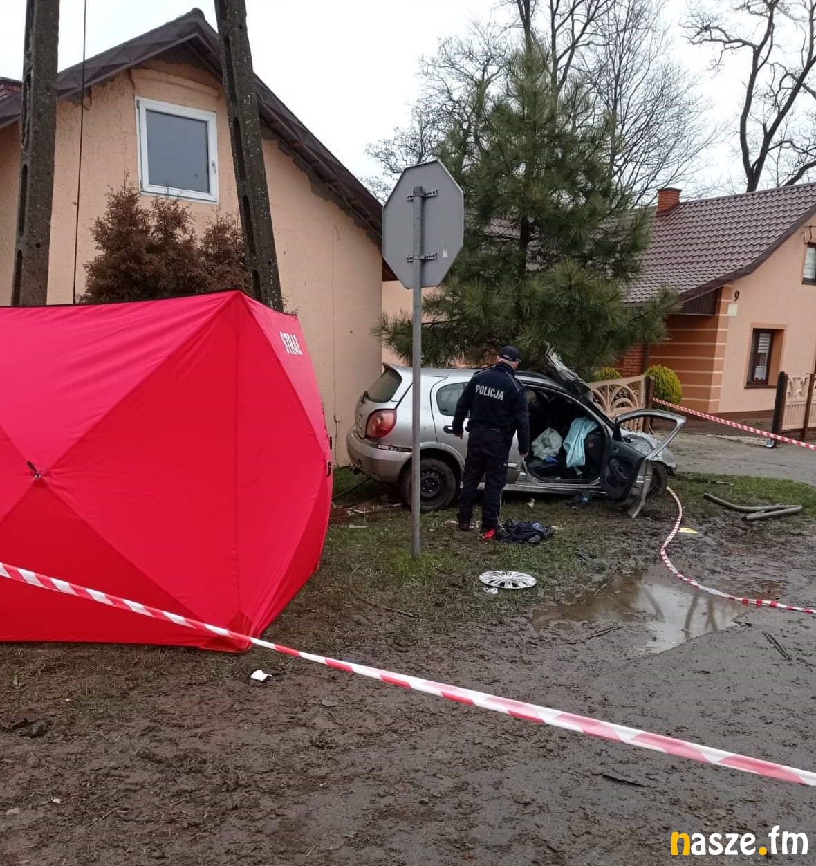 Dziś po południu w Nowej Wsi pod Złoczewem doszło do tragicznego w skutkach wypadku. Zginął 34-letni kierowca nissana. Droga wojewódzka 482 przez prawie dwie godziny była zablokowana.