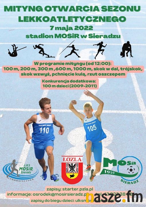 Miejski Ośrodek Sportu i Rekreacji w Sieradzu oraz klub LKS MOSiR Sieradz zapraszają na Mityng Otwarcia Sezonu Lekkoatletycznego. Impreza odbędzie się jutro na Stadionie MOSiR-u.