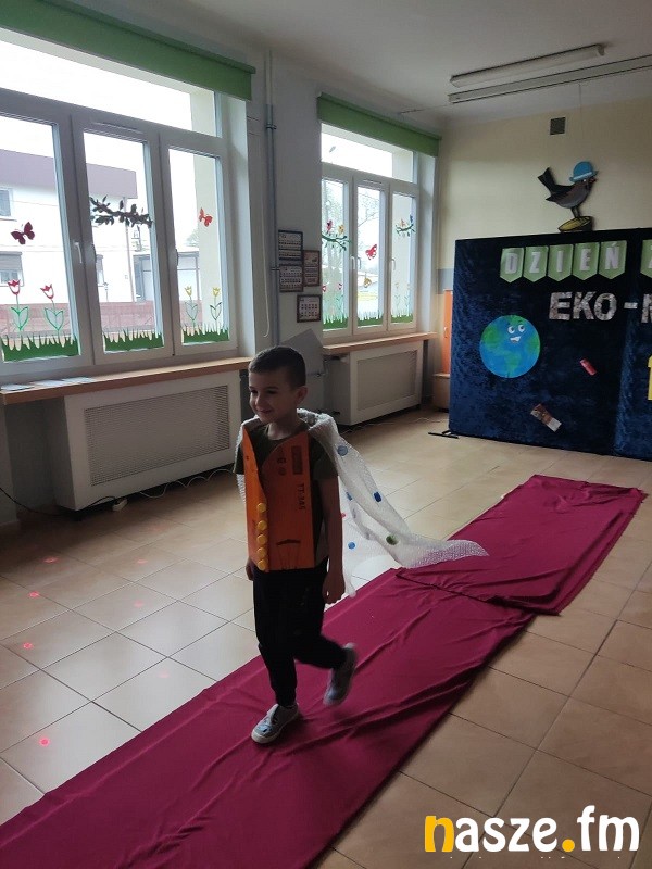 Przedszkolaki wcieliły się w role nie tylko projektantów, ale także modelek i modeli, prezentując na wybiegu bardzo pomysłowe stroje, wykonane z folii, nakrętek plastikowych, kartonów i gazet, zużytych butelek oraz innych materiałów przeznaczonych do recyklingu.