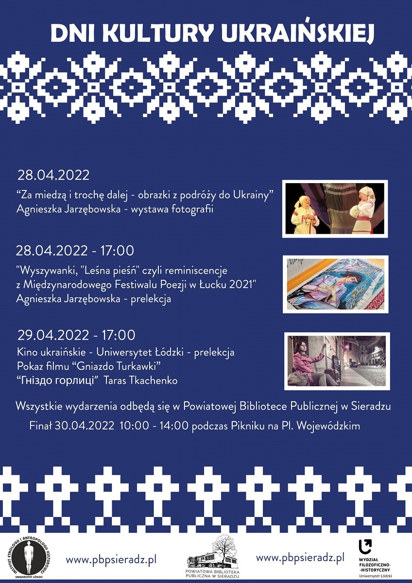 W piątek wspólnie z Uniwersytetem Łódzkim biblioteka zaprasza na spotkanie z ukraińską kinematografią. Będzie prelekcja na temat ukraińskiego kina i pokaz wyjątkowego filmu z plejadą ukraińskich gwiazd "Gniazdo turkawki". Film podejmuje tematykę trudnego życia na uchodźstwie pokazując różne jego oblicza. Początek o 17:00.