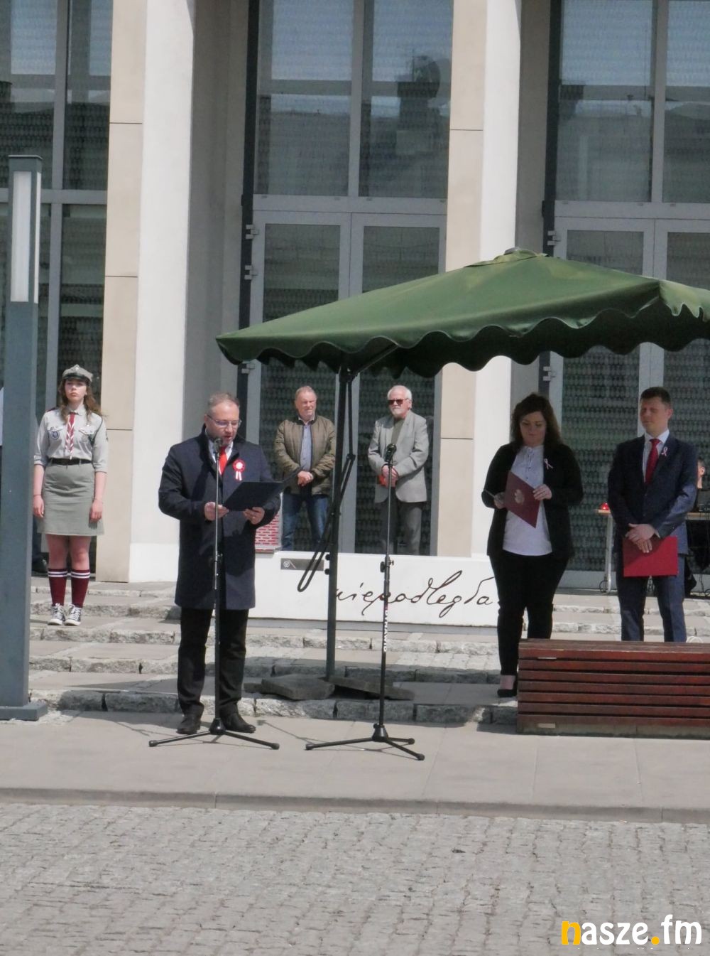 Po przemówieniach władz samorządowych i zaproszonych gości złożono wiązanki kwiatów przed pomnikiem Marszałka Józefa Piłsudskiego. Uroczystość uświetnił pokaz musztry paradnej w wykonaniu uczniów z oddziału mundurowego ZSRCKU Wojsławice oraz występ Miejskiej Orkiestry Dętej.
