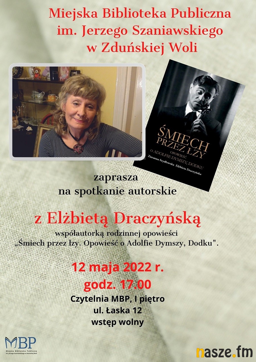 Ten tydzień to tydzień bibliotek. W wielu w naszym regionie organizowane są interesujące spotkania. Miejska Biblioteka Publiczna w Zduńskiej Woli zaprasza dzisiaj na spotkanie autorskie z Elżbietą Draczyńską, współautorką książki "Śmiech przez łzy. Opowieść o Adolfie Dymszy, Dodku".