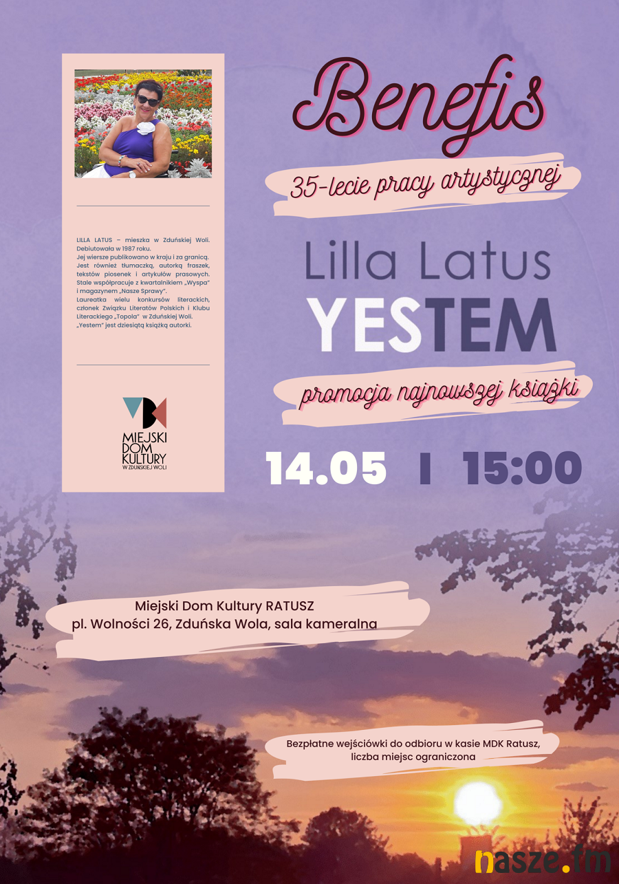 Benefis 35-lecia pracy artystycznej świętować będzie zduńskowolska poetka Lilla Latus. Na sobotnie popołudnie pełne poezji zaprasza Miejski Dom Kultury Ratusz.