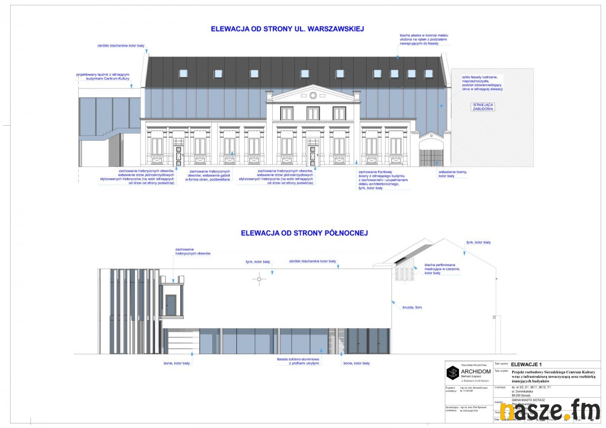 Od strony ul. Warszawskiej powstanie trzykondygnacyjna część budynku, w której znajdzie się przede wszystkim sala kinowa na 100 miejsc, sala plastyczna wraz z pomieszczeniem technicznym oraz pomieszczenia magazynowo-gospodarczo-socjalne. Od tej strony zachowana zostanie historyczna elewacja kamienicy, która zostanie wkomponowana w bryłę nowego budynku. - Myślę, że większość sieradzan doskonale kojarzy tę kamienicę w sąsiedztwie siedziby KRUS przy ul. Warszawskiej. Po zmianach planowanych w ramach rozbudowy Sieradzkiego Centrum Kultury, mieszkańcy zyskają nie tylko nowoczesną salę kinową, ale ta przestrzeń miasta zmieni poważnie swoje oblicze stając się kolejną wizytówką naszego miasta - podkreśla Paweł Osiewała, prezydent Sieradza.