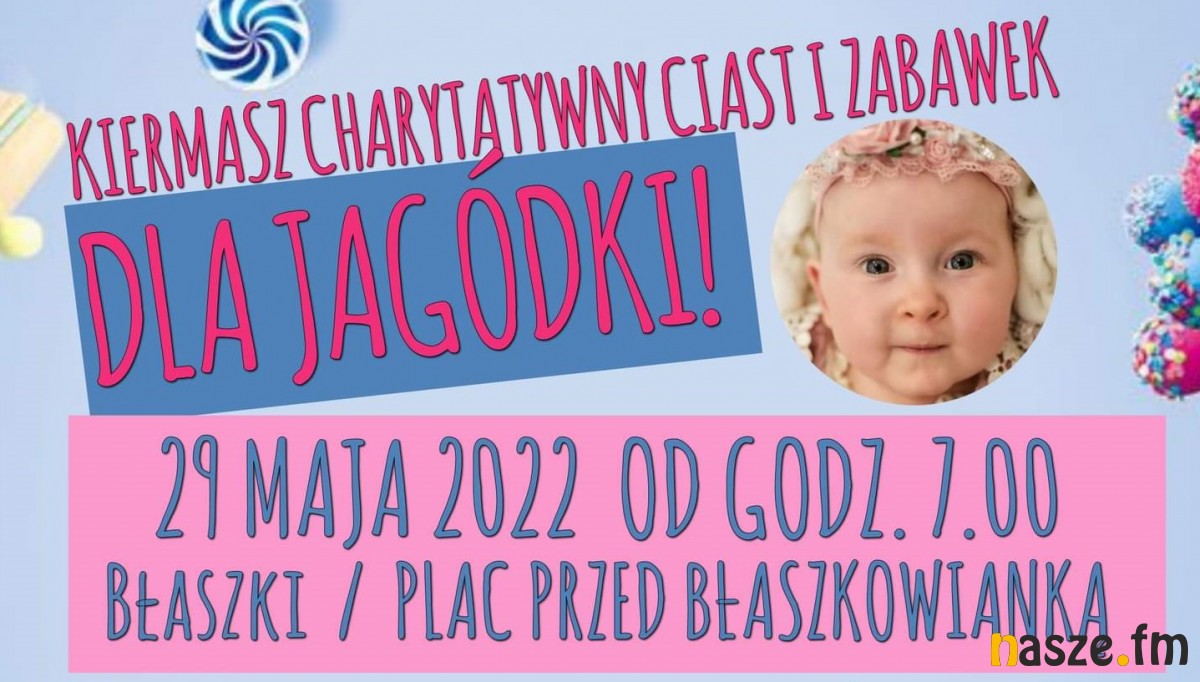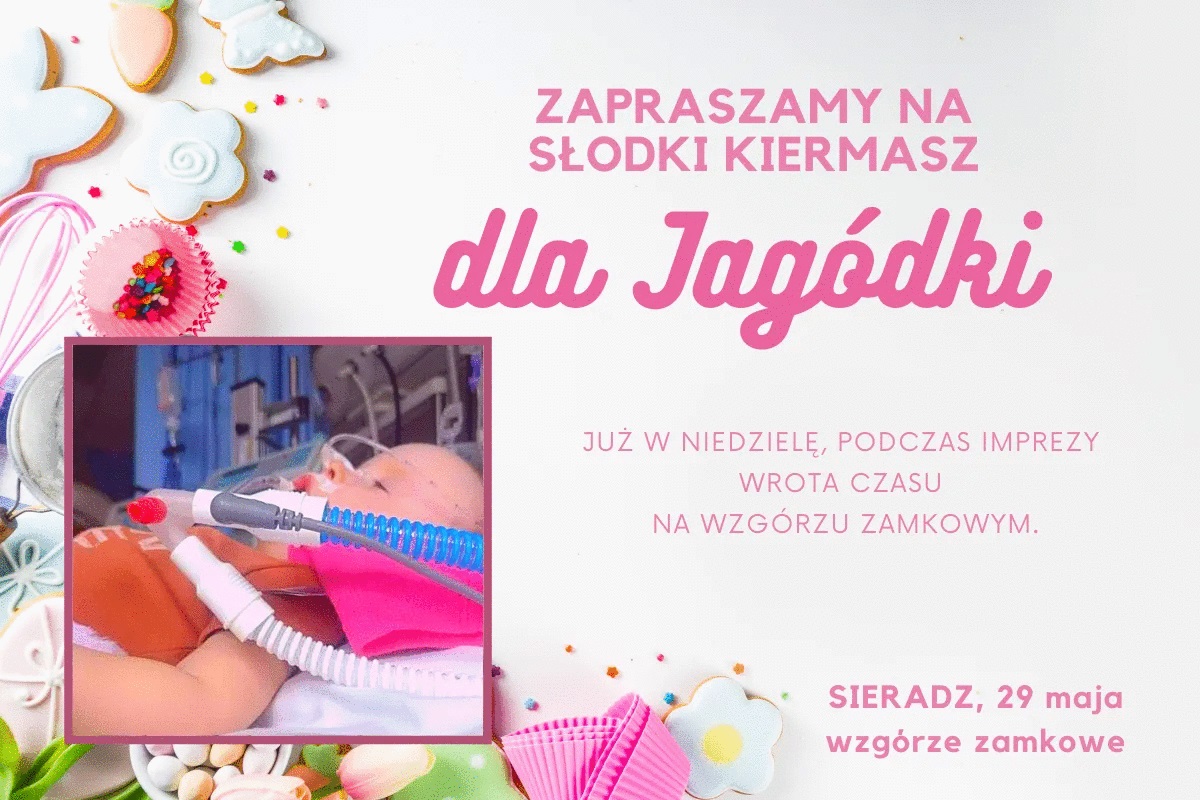 W niedzielę 29 maja odbędą się kolejne wydarzenia, które mają pomóc w zebraniu pieniędzy na leczenie Jagody Michalak. W Błaszkach na placu przed Błaszkowianką o godz. 7:00 rozpocznie się kiermasz ciast i zabawek. Ciasta i zdrowe chlebki będzie się też można kupić na Wzgórzu Zamkowym w Sieradzu i w ten sposób pomóc dziewczynce.