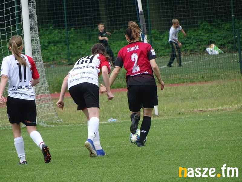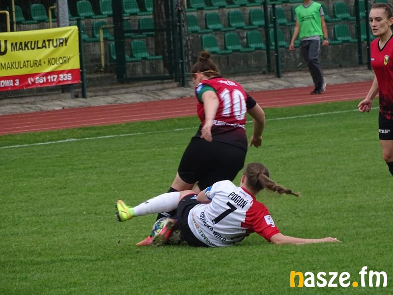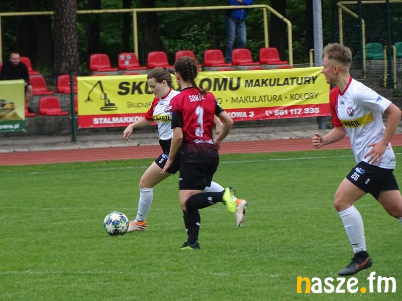Pogoń tej wiosny jeszcze nie wygrała i nie zdobyła kompletu punktów od 15 spotkań. Dzisiejszy mecz był ostatnią szansą, by przerwać tę niechlubną passę. Zaczęło się dobrze. W 10 minucie gola zdobyła Justyna Kubik. Kwadrans później Sokół wyrównał za sprawą Katarzyny Śpiewak.