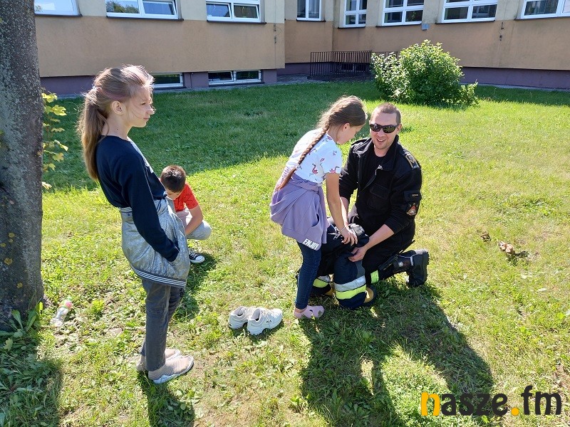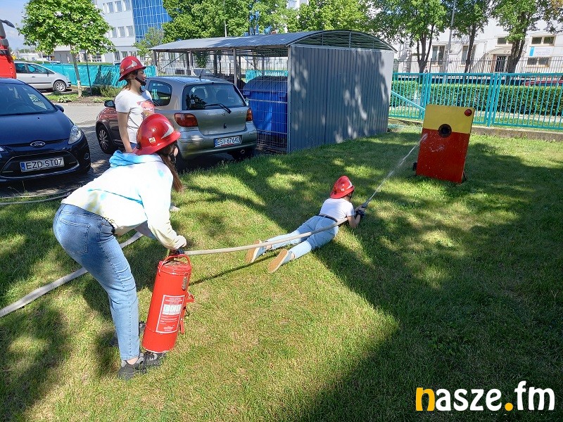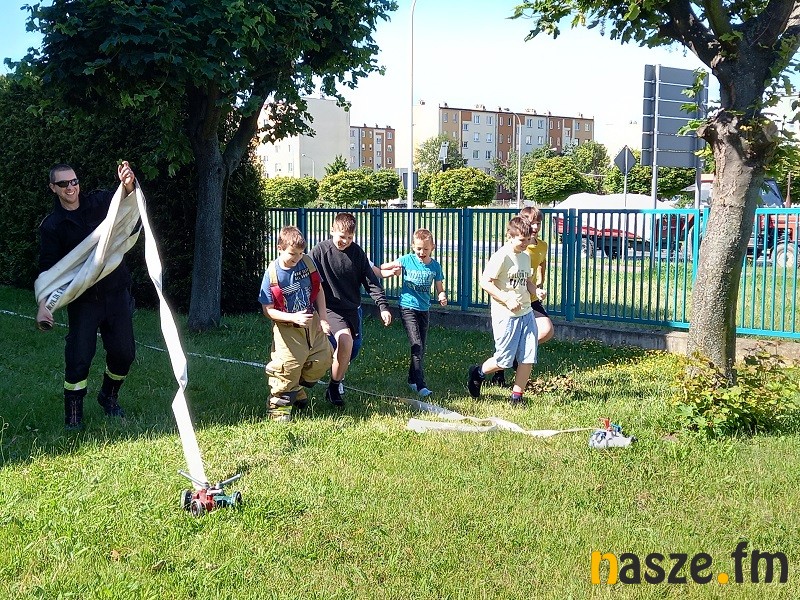 Strażacy zadbali o szereg atrakcji dla milusińskich. Uczniowie "dziewiątki" mogli m.in. spróbować swoich sił na pożarniczym torze przeszkód, czy chwycić za gaśnicą i ugasić symulowany pożar telewizora. Przy okazji zabawy było też kilka praktycznych porad dla najmłodszych.
