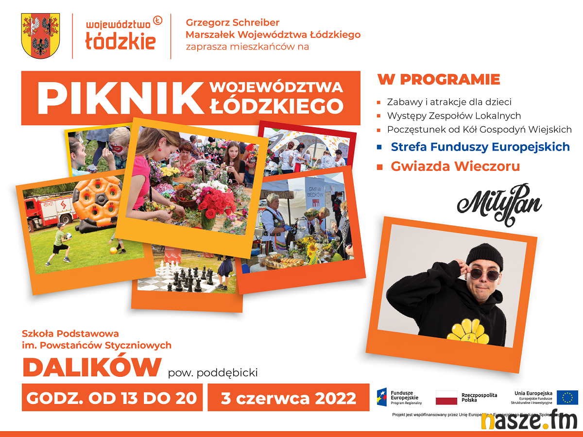 Podczas wydarzenia na całe rodziny czekać będzie wiele atrakcji: dmuchane zamki, zabawy, konkursy, smakołyki od Kół Gospodyń Wiejskich. Dorośli będą mogli uzyskać wiele cennych informacji na temat Funduszy Europejskich, nie zabraknie także stoisk instytucji podległych Urzędowi Marszałkowskiemu Województwa Łódzkiego. Swoje stanowisko ma również Narodowy Fundusz Zdrowia i Służby Mundurowe.