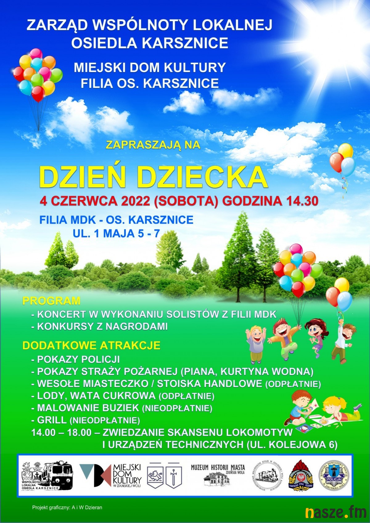 W najbliższą sobotę, 4 czerwca, Karsznicka Filia Miejskiego Domu Kultury w Zduńskiej Woli i Zarząd Wspólnoty Lokalnej Osiedla Karsznice zapraszają na koncert solistów z Filii MDK, będą konkursy z nagrodami, pokazy policji i straży pożarnej, malowanie buziek i grill. Wśród atrakcji również: wesołe miasteczko, lody, wata cukrowa. W godzinach 14:00-18:00 będzie można zwiedzać Skansen Lokomotyw i Urządzeń Technicznych.