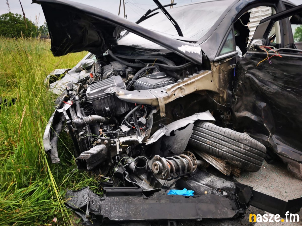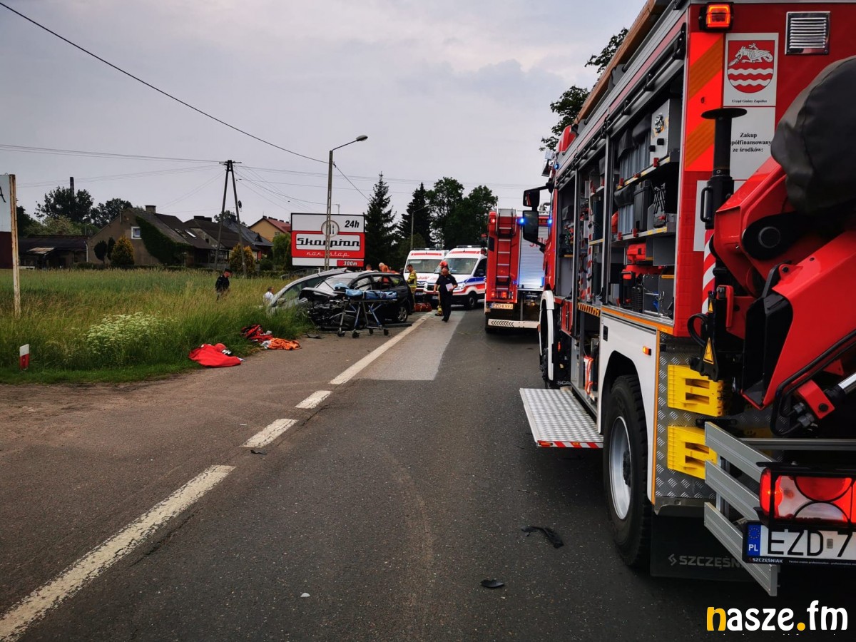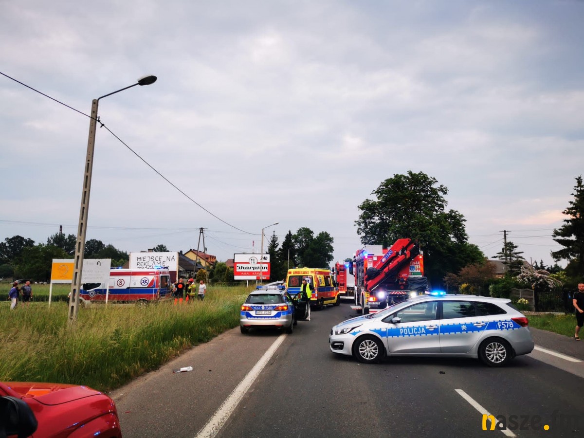 Na miejscu wypadku pracowały 3 strażackie zastępy, kilka karatek i patroli policji. Droga była całkowicie zablokowana.