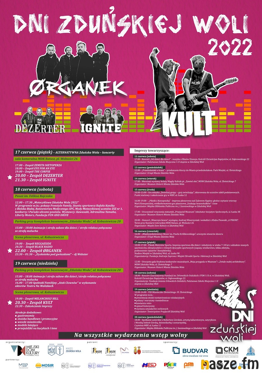 Dezerter, Ignite, Ørganek, Melancholy Hill i Kult - to tylko część gwiazd, które wystąpią podczas tegorocznych Dni Zduńskiej Woli, które odbędą się w ten weekend. Wydarzenie powraca po dwuletniej przerwie.