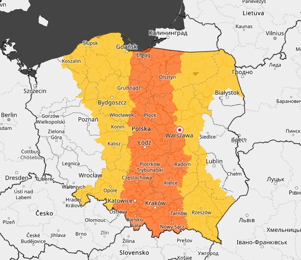Ostrzeżenia wydane przez IMGW będą obowiązywać dziś od godz. 14:00 do 22:00.