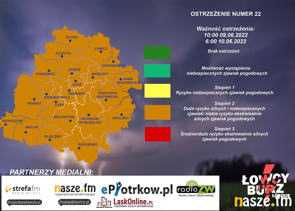 CZAS OBOWIĄZYWANIA OSTRZEŻENIA: od 10:00 dnia 09.06.2022 do 06:00 dnia 10.06.2022
