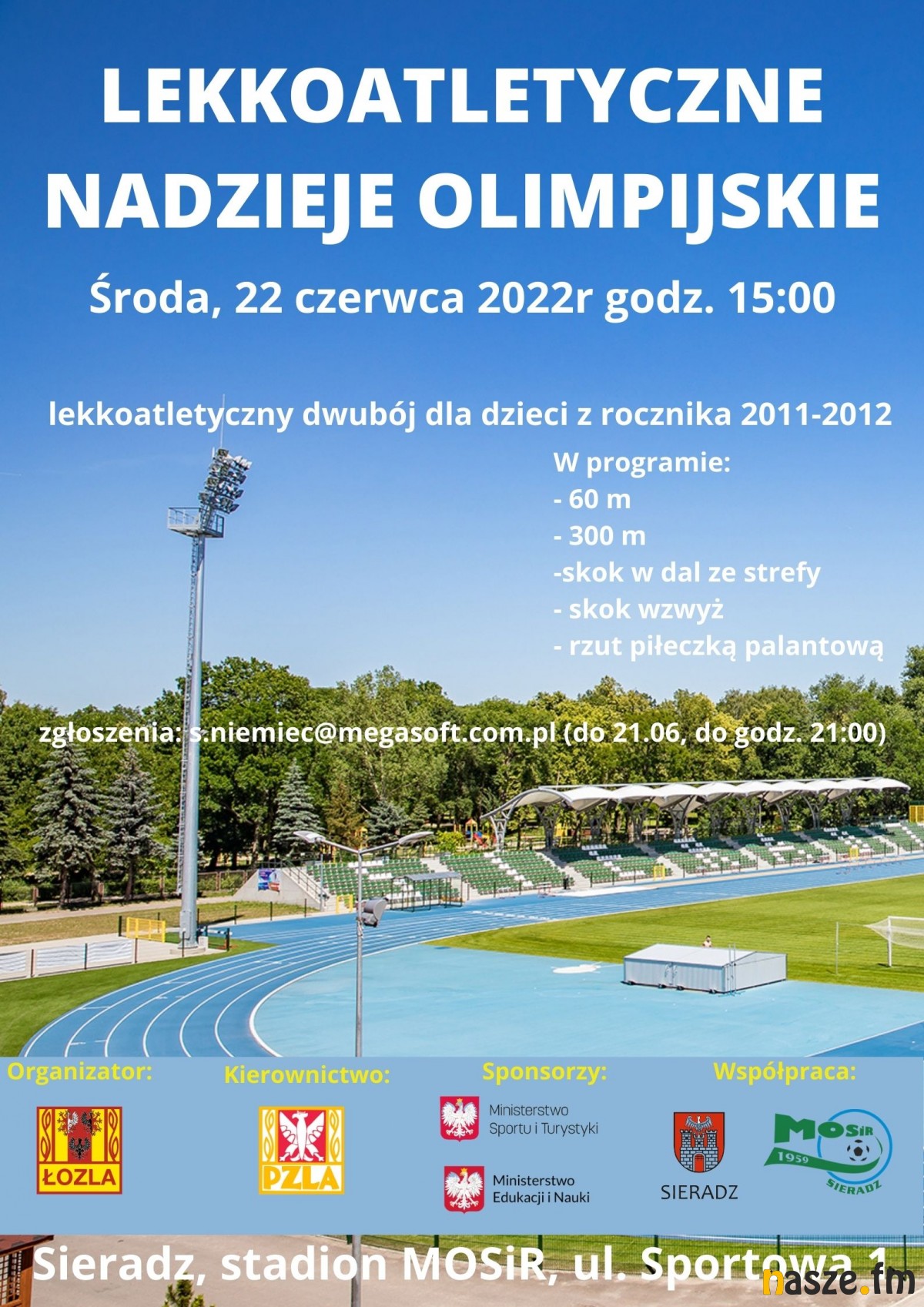Imprezą towarzyszącą temu wydarzeniu będą zawody Lekkoatletyczne Nadzieje Olimpijskie, które odbędą się dzisiaj i są dedykowane dzieciom z roczników 2011-2012. Udział w rywalizacji weźmie utalentowana sportowo młodzież z województwa łódzkiego, także z sieradzkich szkół. Początek zawodów o 15:00.