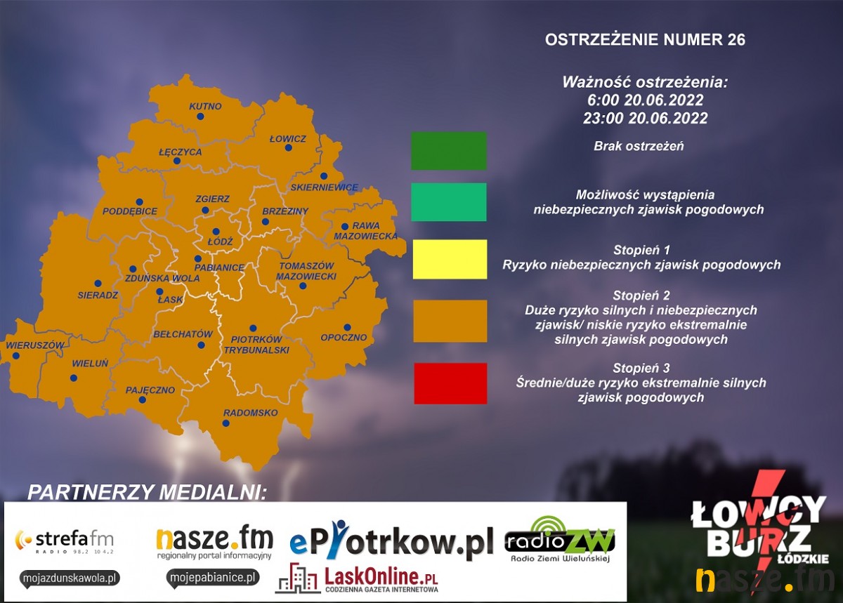 Czas obowiązywania ostrzeżenia: od 6:00 20.06.2022 do 23:00 20.06.2022