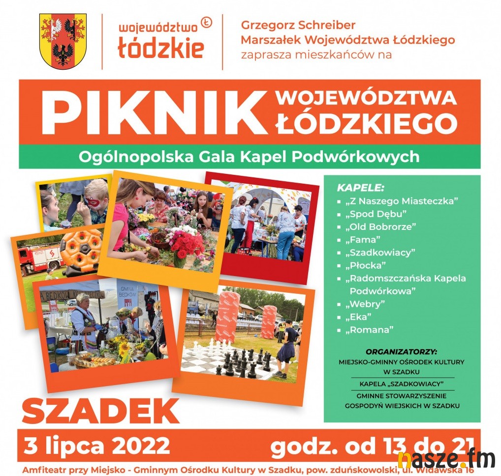 Muzyka ludowa, regionalne przysmaki oraz wyśmienita zabawa dla całych rodzin. Tak w skrócie zapowiada się najbliższa niedziela, 3 lipca, w Szadku. W tamtejszym Amfiteatrze odbędzie się Piknik Województwa Łódzkiego, któremu towarzyszy XVIII Ogólnopolska Gala Kapel Podwórkowych.