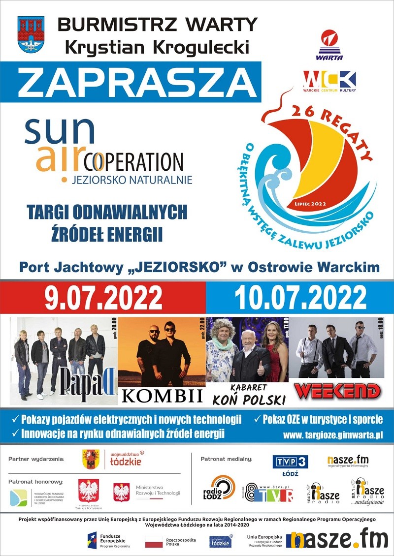 Ten weekend to kolejna edycja Sun Air Coperation, targów poświęconych energii odnawialnej, które odbywają się w porcie jachtowym Jeziorsko w Ostrowie Warckim (gm. Warta). Wydarzenie jest połączone z Regatami o Błękitną Wstęgę Zalewu Jeziorsko oraz koncertami. W sobotę wystąpili Papa D i Kombii, niedziela to kabaret Koń Polski i Weekend. Głównym organizatorem targów jest Urząd Miejski w Warcie.