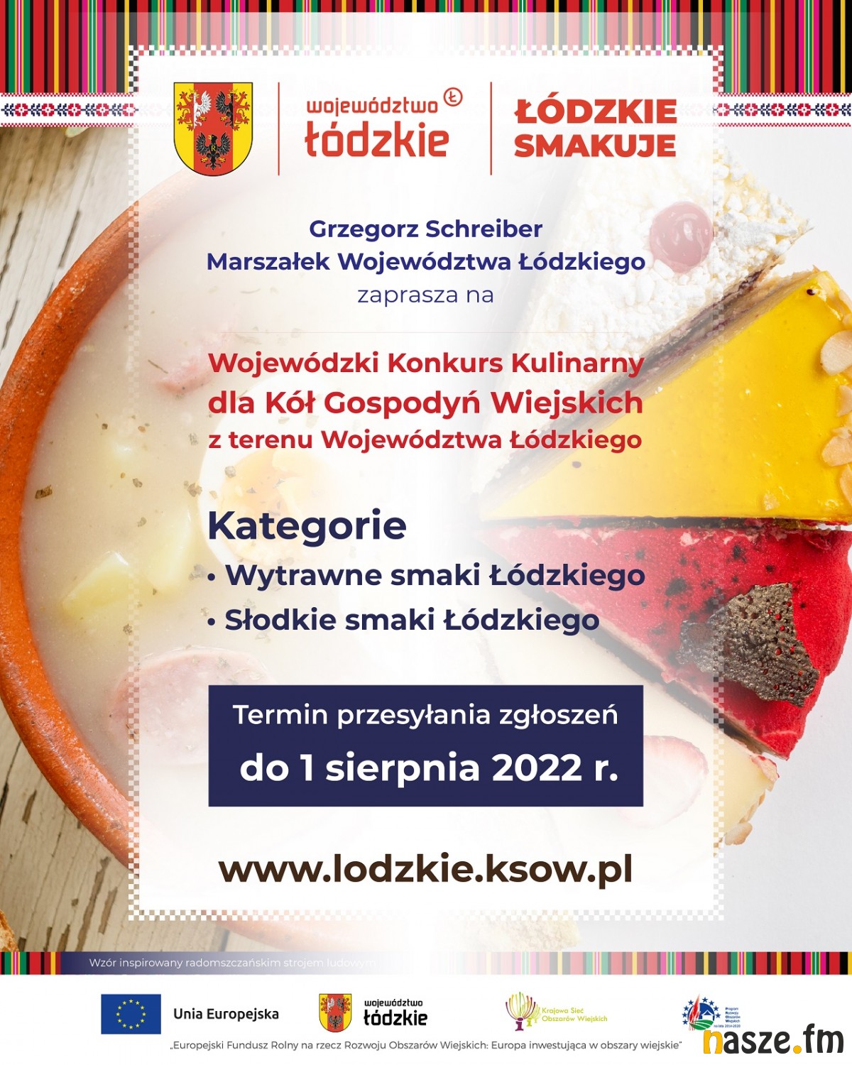 Formularz zgłoszeniowy i wszelkie informacje o konkursie dostępne są na stronie: https://lodzkie.ksow.pl/aktualnosc/dozynkowy-konkurs-lodzkie-smakuje-1