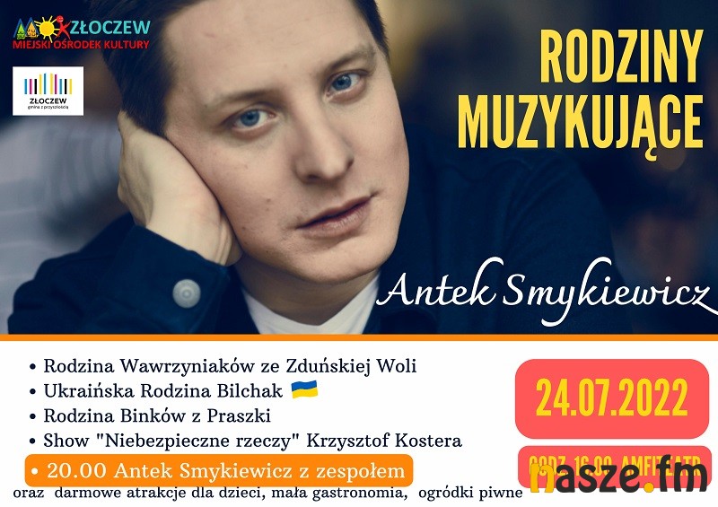- Zapraszamy serdecznie na Spotkania Rodzin Muzykujących. Na scenie wystąpią: Rodzina Wawrzyniaków ze Zduńskiej Woli, Ukraińska rodzina Bilchak, Rodzina Binków z Praszki. Krzysztof Kostera zaprezentuje show "Niebezpieczne rzeczy". Na zakończenie wystąpi Antek Smykiewicz z zespołem. Nie zabraknie również darmowych atrakcji dla dzieci i małej gastronomii- informują organizatorzy
