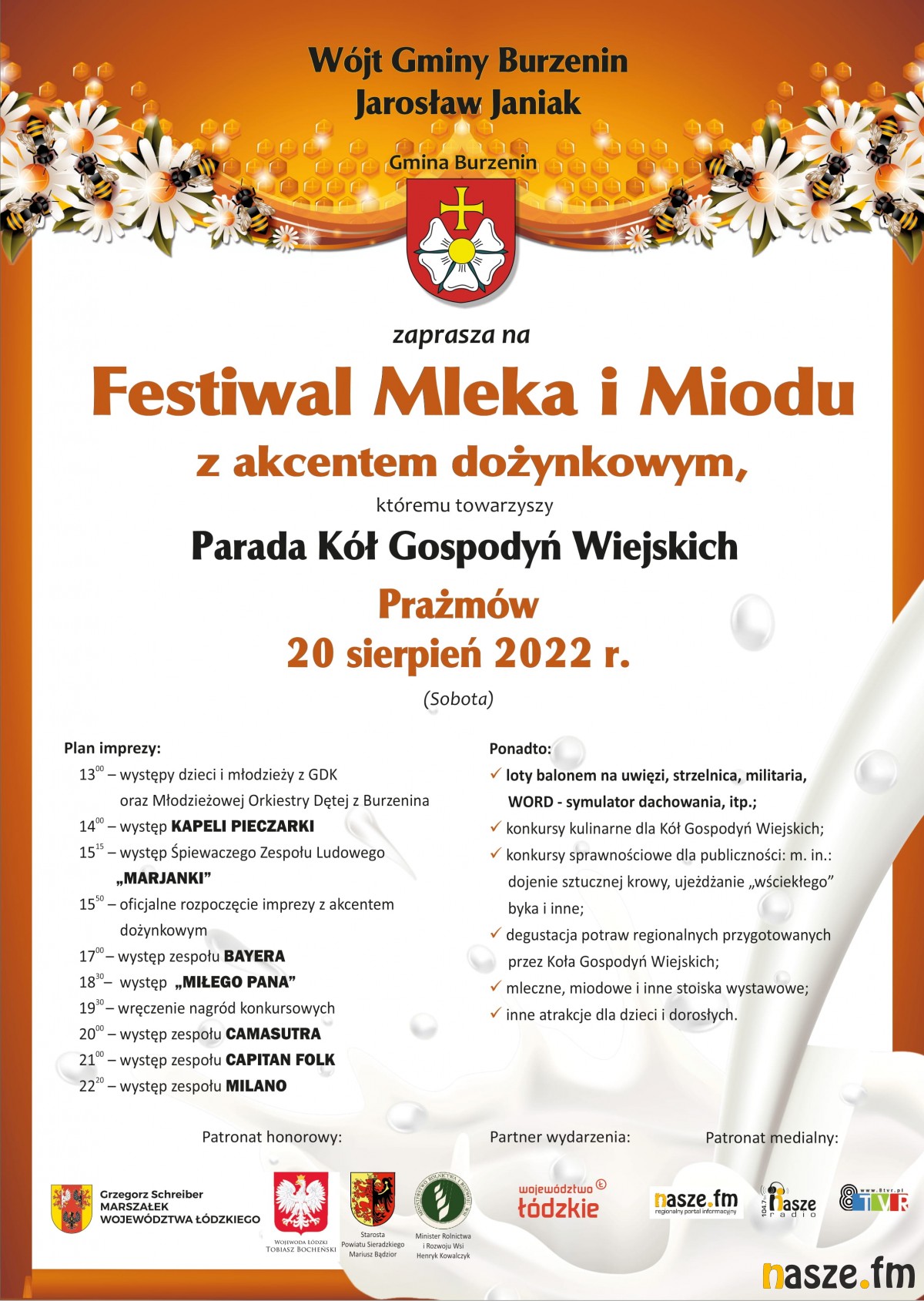 Tegoroczny Festiwal Mleka i Miodu odbędzie się 20.08. w Prażmowie. Organizatorzy zapraszają wszystkich chętnych.