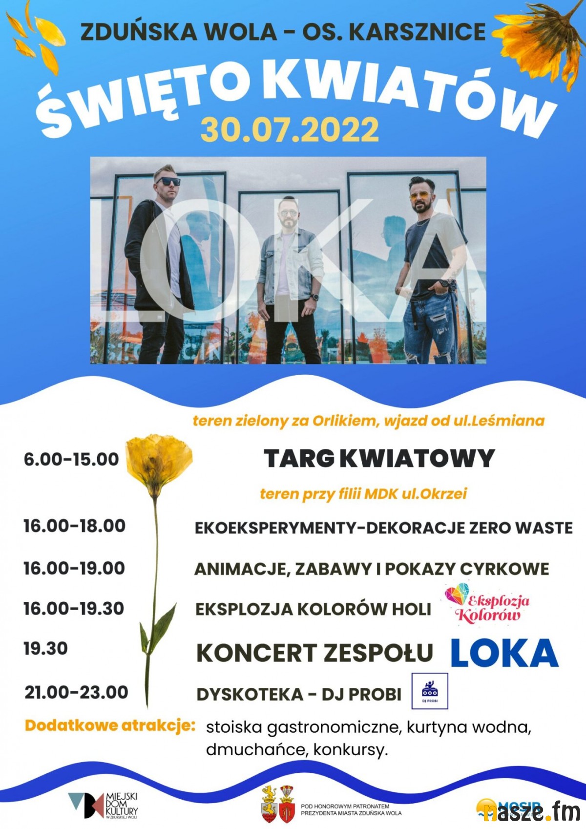 - Część handlowo–kwiatowa rozpocznie się o godzinie 6:00 i potrwa do godziny 15:00. Stoiska wystawiennicze ustawione będą na terenie zielonym za Orlikiem (wjazd od ul. Leśmiana). Od godz. 16.00 zapraszamy do wspólnej zabawy przy filii MDK, ul. Okrzei. Zaplanowaliśmy ekoeksperymenty – dekoracje zero waste (16.00-18.00), animacje, zabawy i pokazy cyrkowe (16.00-19.00) oraz eksplozję kolorów Holi (16.00-19.30). Muzyczną niespodzianką będzie mini recital Martyny Majchrzak. O godzinie 19.30 wystąpi gwiazda wieczoru – zespół LOKA – dodaje Joanna Sychniak-Paterek.