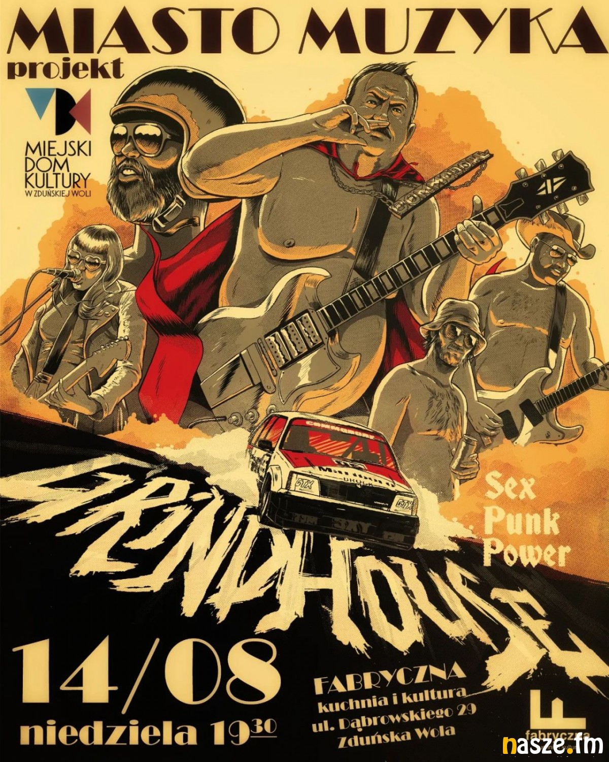 Koncert zespół Grindhouse odbędzie się 14 sierpnia o godzinie 19.30 w plenerze. Fabryczna | kuchnia i kultura, ul. Dąbrowskiego 29.