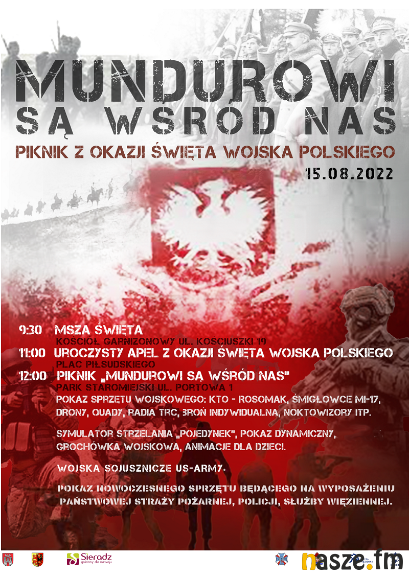 Dowódca 15. Sieradzkiej Brygady Wsparcia Dowodzenia, Prezydent Miasta Sieradza i Starosta Sieradzki zapraszają do udziału w uroczystościach z okazji obchodów Święta Wojska Polskiego w dniu 15 sierpnia br.