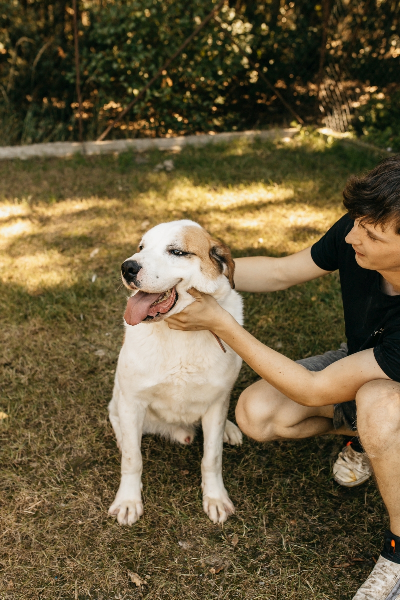 Benek jest wielkim psem, ale z charakteru to jeszcze dzieciak. Uwielbia ludzi, jest bardzo kontaktowy. Z podstawowych informacji, przepięknie chodzi na smyczy, a nawet bez niej, mimo że jest ogromny nie ciągnie wyprowadzającego, tylko idzie przy nim bez myślenia o ciągnięciu czy ucieczce. Dowody możecie zobaczyć w filmiku w komentarzu pod tym postem. Nie ma problemu z innymi zwierzakami, zarówno z psiakami jak i kotami. Jest bardzo wesołym i pozytywnym psiakiem, ale też energicznym i żywiołowym. Idealnie sprawdzi się jako członek rodziny. Benio bardzo lubi dzieci.