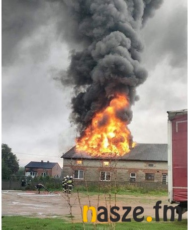 Pożar budynku mieszkalno-gospodarczego w Kliczkowie Małym, to gmina Brzeźnio. Budynek stanął w ogniu od uderzenia pioruna.