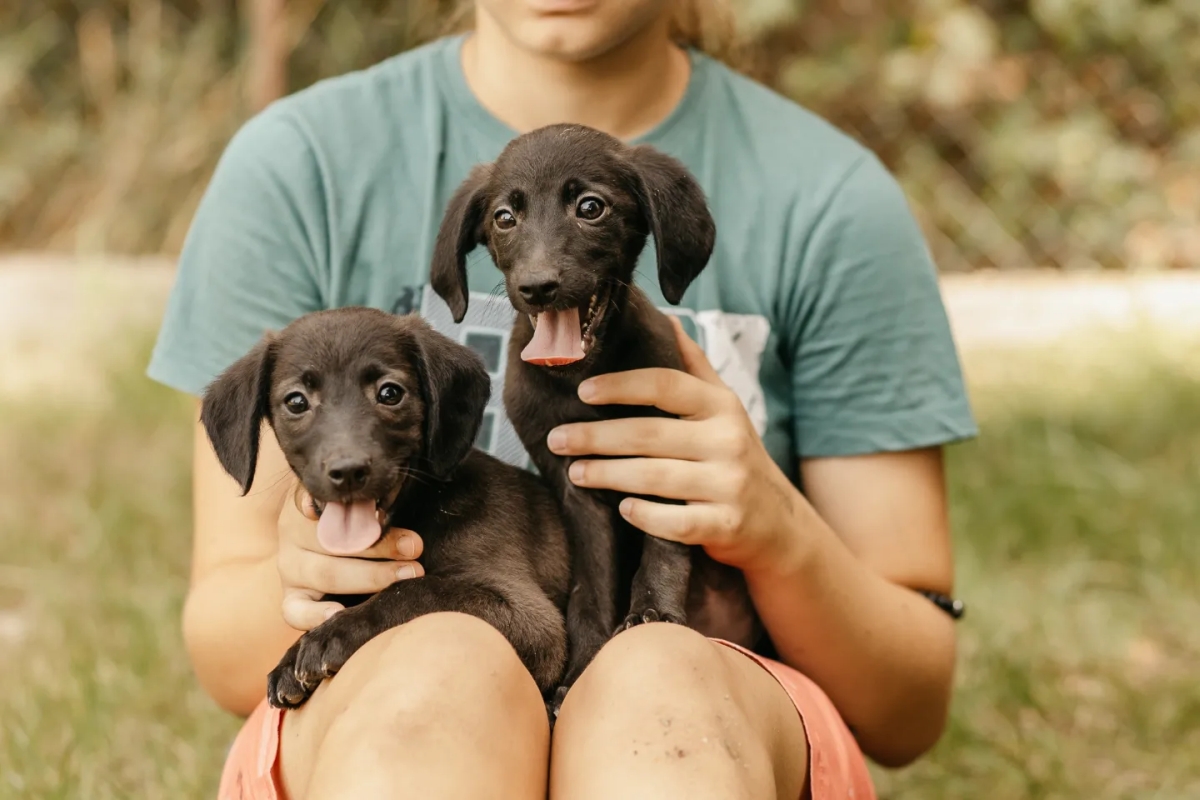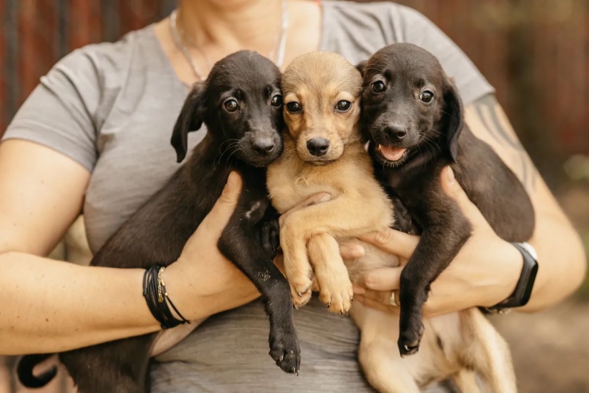 Okiełznać te trójkę nie jest łatwo. Ale w pojedynkę dacie sobie radę. Dwie czarne suczki i jeden brązowy psiak polecają się do adopcji. Maluchy mają około 3 miesięcy, są bardzo energiczne i kochają czułości. Jak to w przypadku szczeniaków, przed nimi nauka czystości, chodzenia na smyczy itd. To bystre maluszki, więc przy odpowiedniej ilości czasu i cierpliwości, wspólnie na pewno będziecie w stanie je wiele nauczyć.