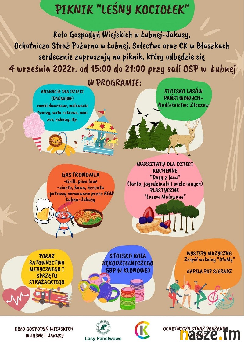 Koło Gospodyń Wiejskich Łubna - Jakusy w gminie Błaszki będzie promowało Lasy Państwowe.Z tej okazji zaprasza na niedzielny piknik.