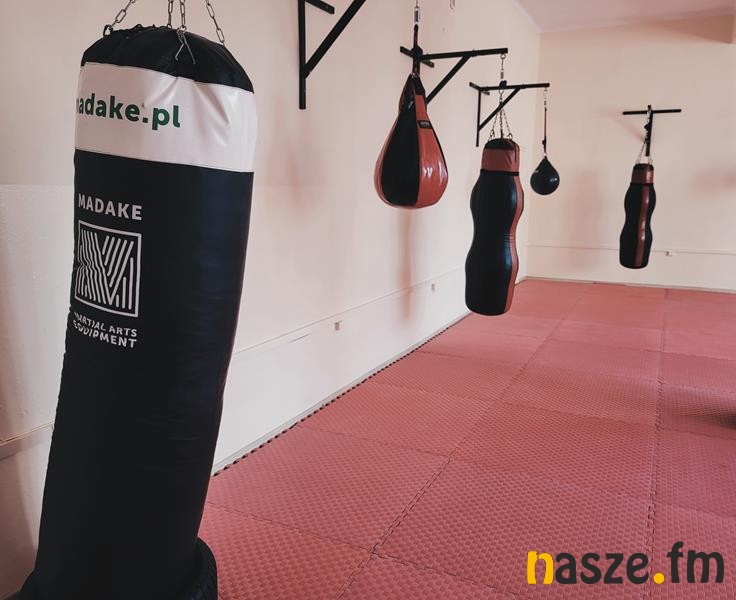 Do dyspozycji są worki stojące, gruszki bokserskie, piłki gimnastyczne, ketle, hantle, tarcze treningowe i stepy do ćwiczeń fitness. Sala ma wymiary 10x12 m.