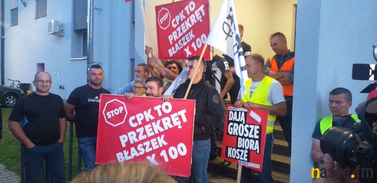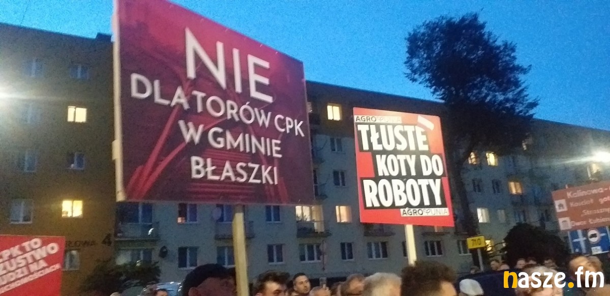 Niezadowoleni mieszkańcy gminy Błaszki nie dopuścili w piątek do konsultacji w sprawie kolei dużych prędkości. Zaczęło się od blokady DK 12, gdzie na pasach przechodziło około stu osób. Znacznie większy tłum zgromadził się przed Centrum Kultury w Błaszkach, gdzie miało się odbyć spotkanie z przedstawicielami Centralnego Portu Komunikacyjnego.
