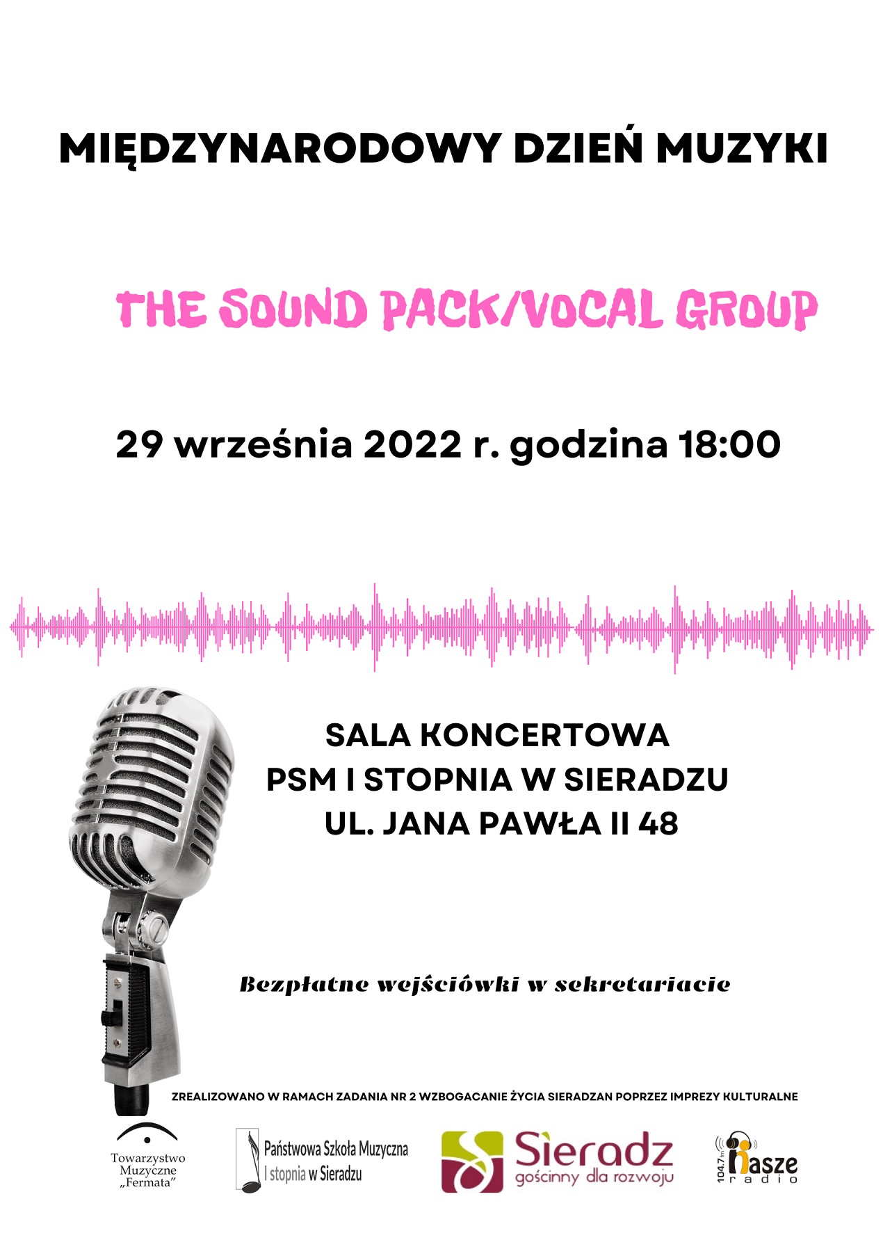 Zbliża się Międzynarodowy Dzień Muzyki. Z tej okazji w sali koncertowej Państwowej Szkoły Muzycznej I st. w Sieradzu odbędzie się koncert. W czwartek 29 września wystąpi kwartet wokalny "The Sound Pack".