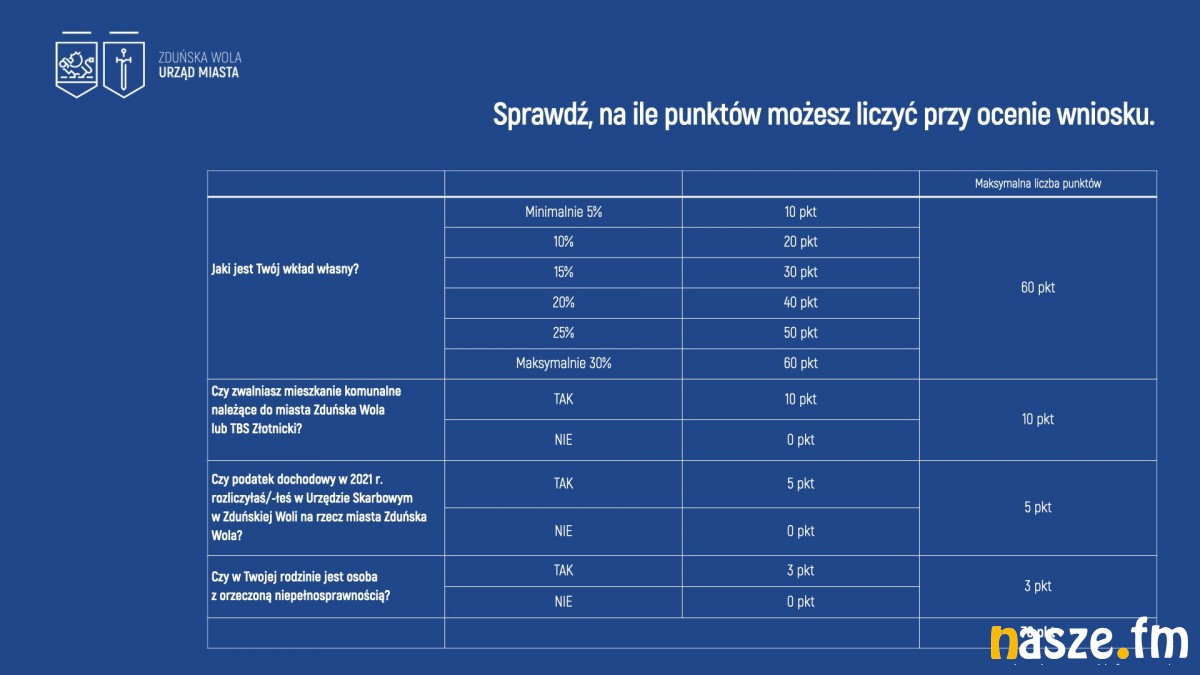 Jeśli wnioskodawca rozliczył w 2021 r. podatek dochodowy w Urzędzie Skarbowym w Zduńskiej Woli na rzecz miasta (a więc podał jako adres zamieszkania Zduńską Wolę), otrzyma 5 pkt. Na dodatkowe 10 pkt mogą liczyć osoby, które zwalniają inne mieszkania należące do TBS Złotnicki lub komunalne od miasta. – W ten sposób odzyskamy do swoich zasobów lokale, które będziemy mogli przekazać innym rodzinom – wyjaśnia prezydent Pokora. Na punkty mogą też liczyć rodziny, w których choć jedna osoba ma orzeczoną niepełnosprawność.