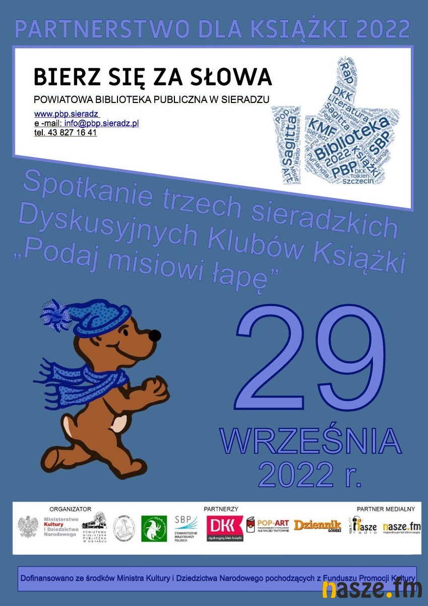 Spotkanie jest elementem projektu "Bierz się za słowa", realizowanego w ramach programu „Partnerstwo dla książki”. Program dofinansowany jest przez Ministerstwo Kultury i Dziedzictwa Narodowego ze środków Funduszu Promocji Kultury.