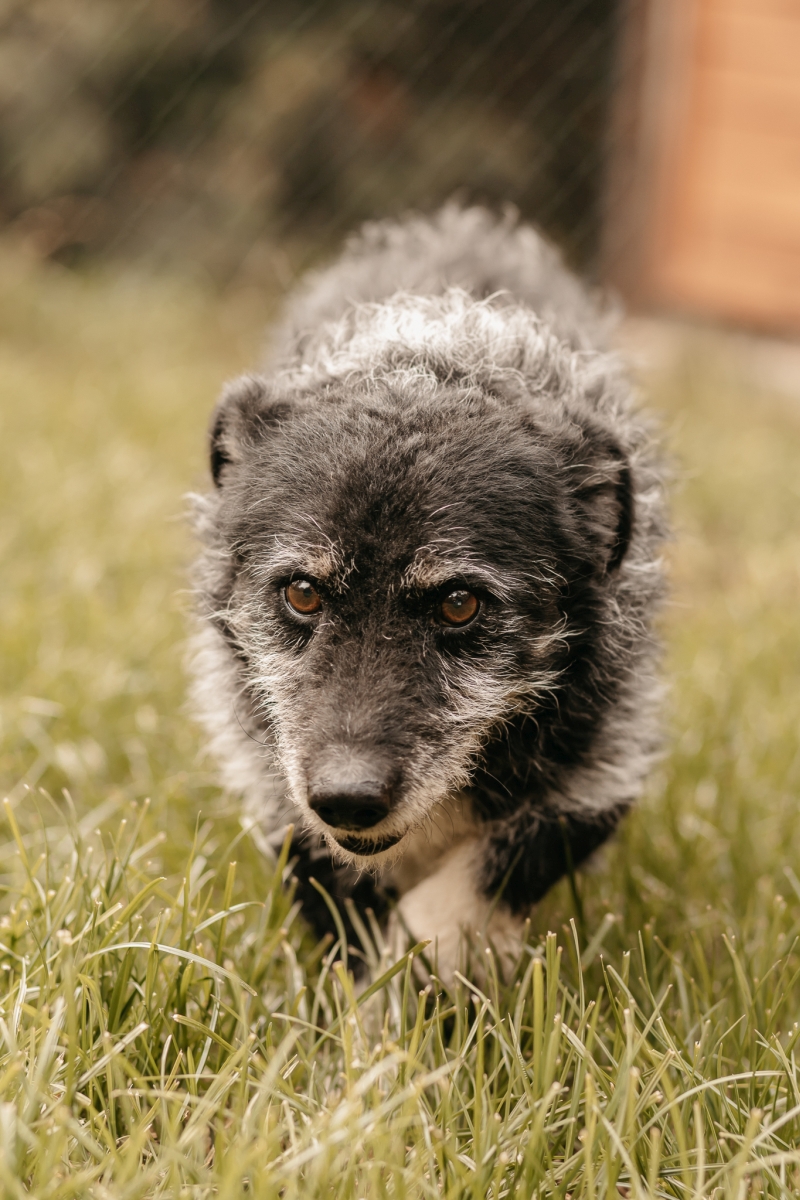 Kolejnym seniorkiem jest Miecio. Tego czworonoga już chyba znają wszyscy nasi wolontariusze. Ten koleżka jest stałym bywalcem sobotnich spacerów i każdy bardzo go chwali. Idealnie chodzi na smyczy i ma całkiem dobrą kondycję. Bardzo lubi być wśród ludzi jest bardzo towarzyski. Miecio to już psi seniorek, ale mamy nadzieję, że szybko znajdzie się ktoś kto pokocha ten siwiutki pyszczek.