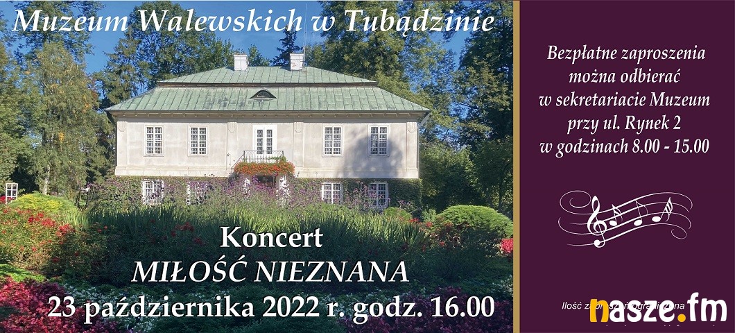 Podczas koncertu w Muzeum Walewskich w Tubądzinie, który rozpocznie się o godz. 16:00, będzie można posłuchać muzyki polskiej, francuskiej, zabrzmią też motywy filmowe.