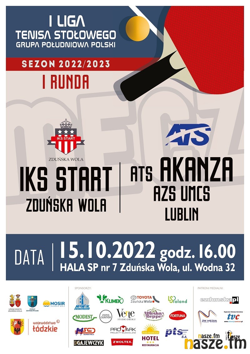 Jutro przed własną publicznością START Zduńska Wola zagra z AZS-em UMCS Lublin. Będzie to czwarte spotkanie w tym sezonie I ligi tenisa stołowego. Początek o 16:00 w hali Szkoły Podstawowej nr 7 w Zduńskiej Woli.