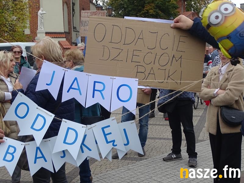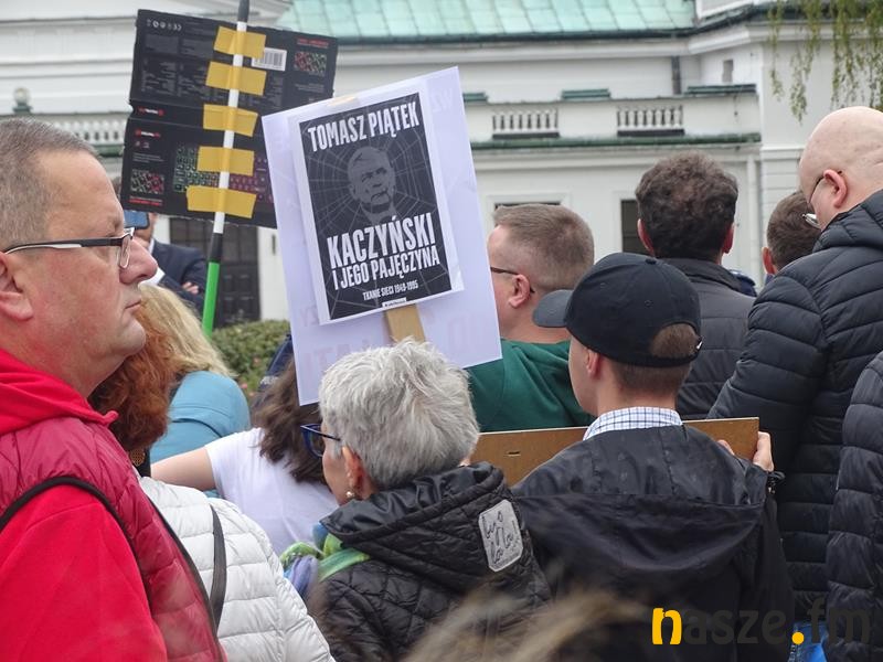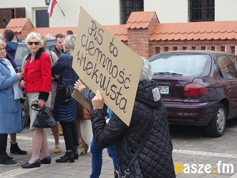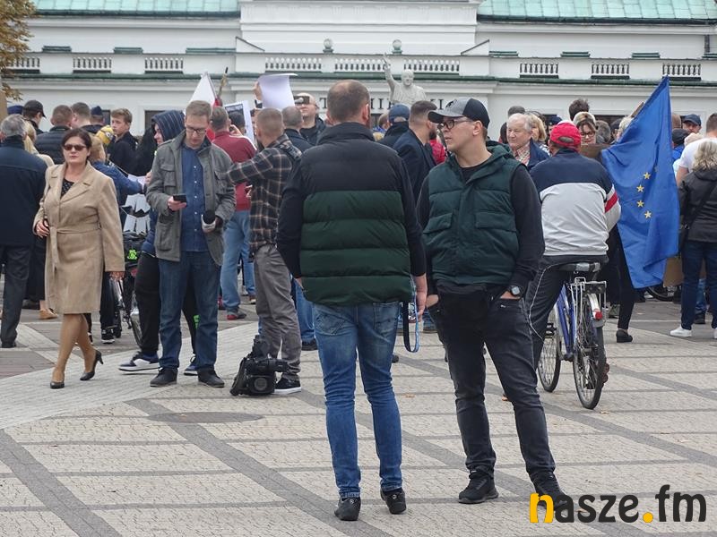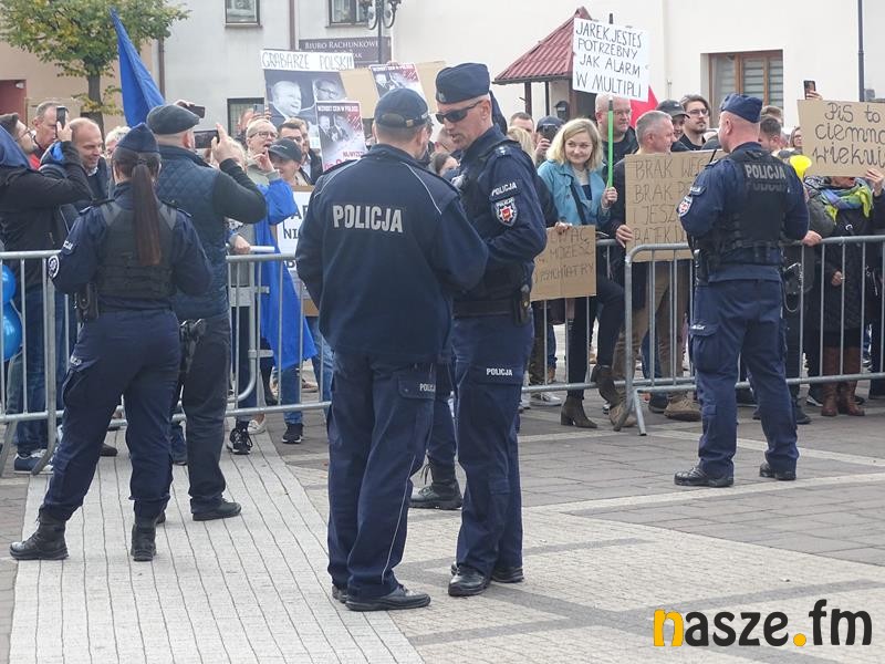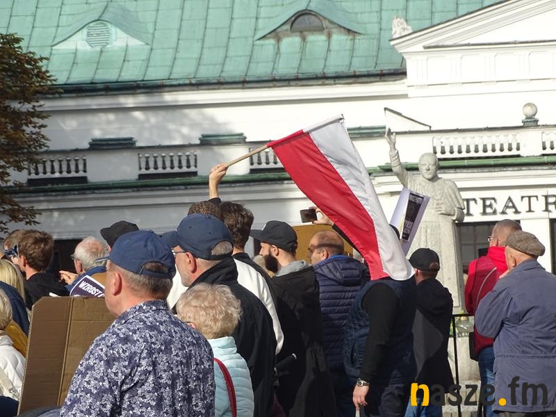 Przed teatrem zebrali się przeciwnicy polityki Prawa i Sprawiedliwości, którzy manifestacyjnie wyrażali swoje niezadowalanie z aktualnej sytuacji w kraju.