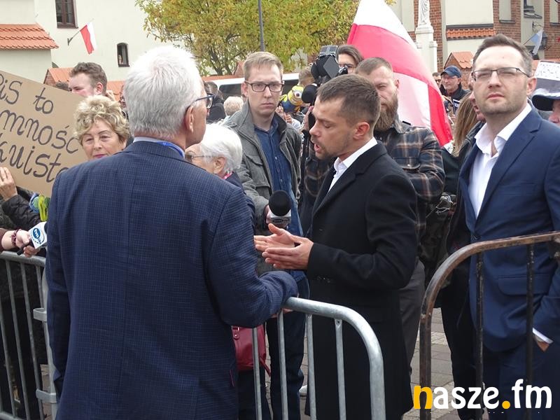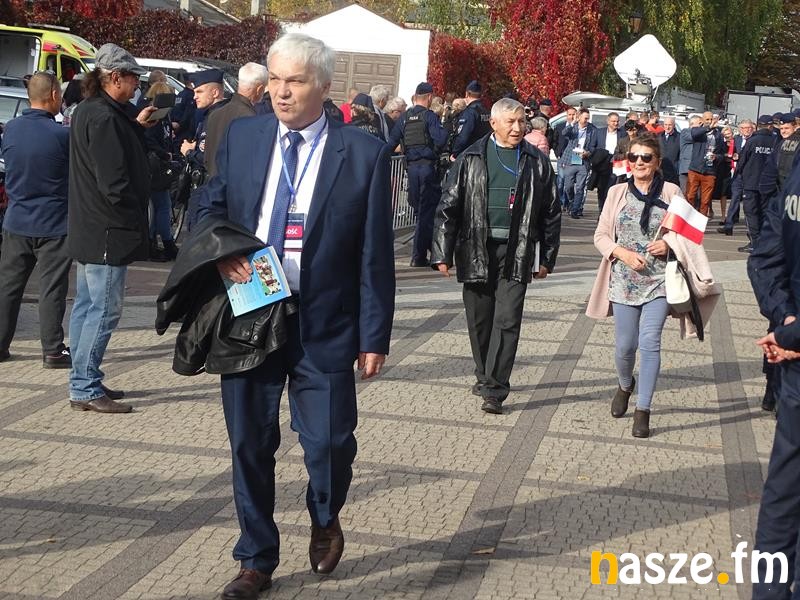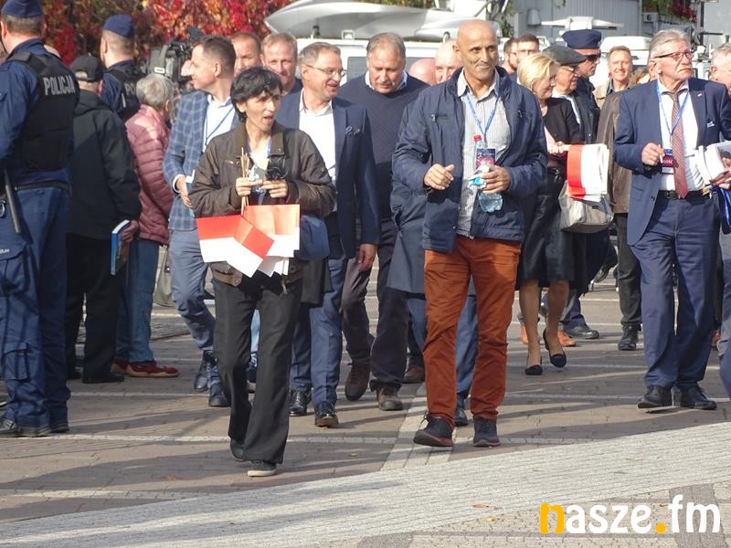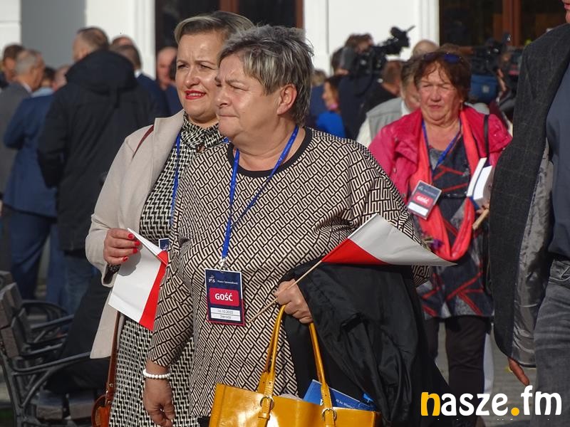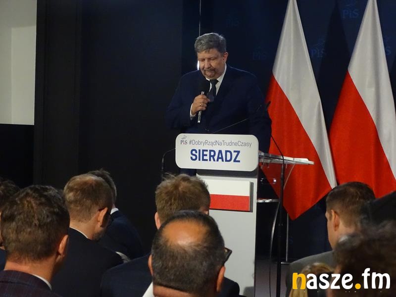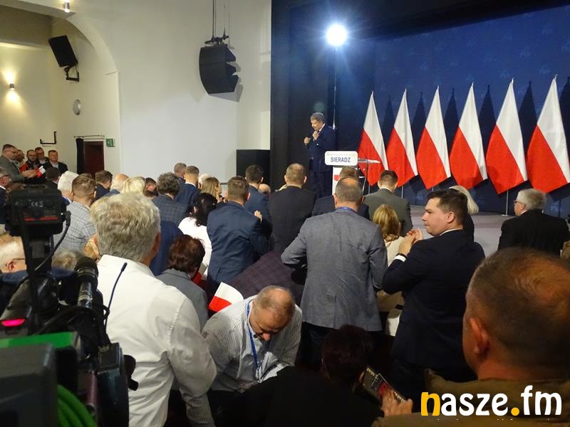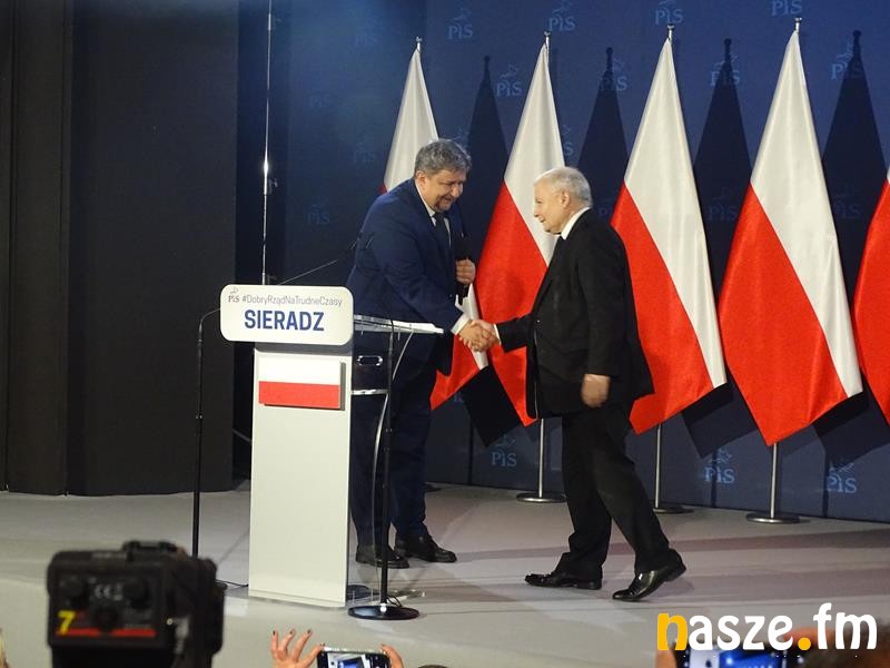 Pojawili się politycy PiS, wśród nich europoseł Ryszard Czarnecki. Był też prezydent Sieradza Paweł Osiewała, a wejście Kaczyńskiego zapowiedział marszałek województwa łódzkiego Grzegorz Schreiber. Zanim prezes PiS wszedł na scenę, to odegrano jeszcze hymn państwowy. Kaczyński dużo uwagi poświęcił polityce Niemiec i Unii Europejskiej: