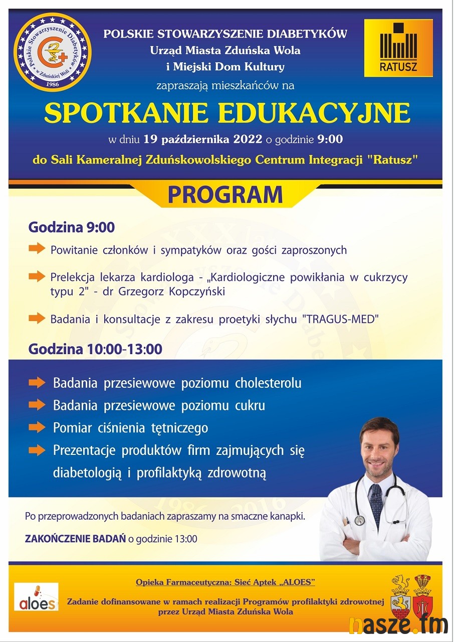 Na spotkanie zapraszają: Polskie Stowarzyszenie Diabetyków, Urząd Miasta oraz Miejski Dom Kultury w Zduńskiej Woli.